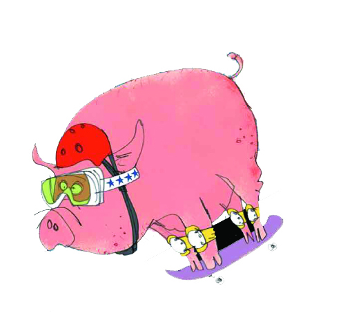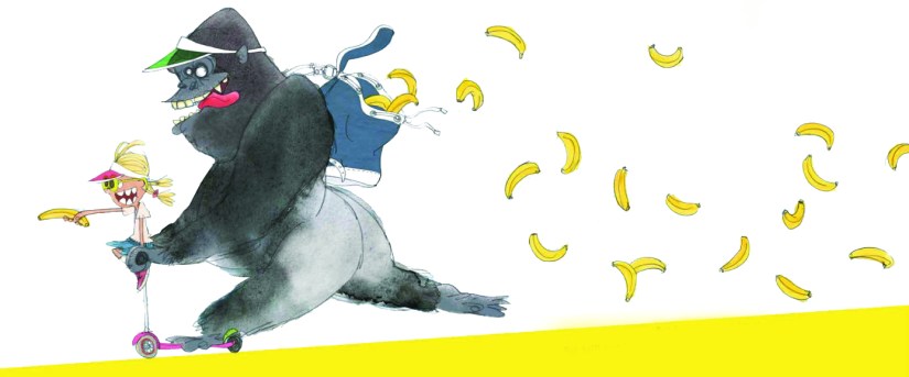 An elephant on the bus, a tiger on a train, a centipede on roller skates, a hippo in hot air balloons, a pig on skateboards…This book is about silly animals travelling in very unsuitable vehicles – and of course causing all sorts of havoc.
