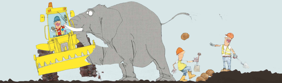 An elephant driving a digger, a polar bear giving you a haircut, a seal preparing a meal, a kangaroo taking you to the loo…Elephant & Co are back. This time the silly animals want to be helpful – but of course they end up causing chaos.