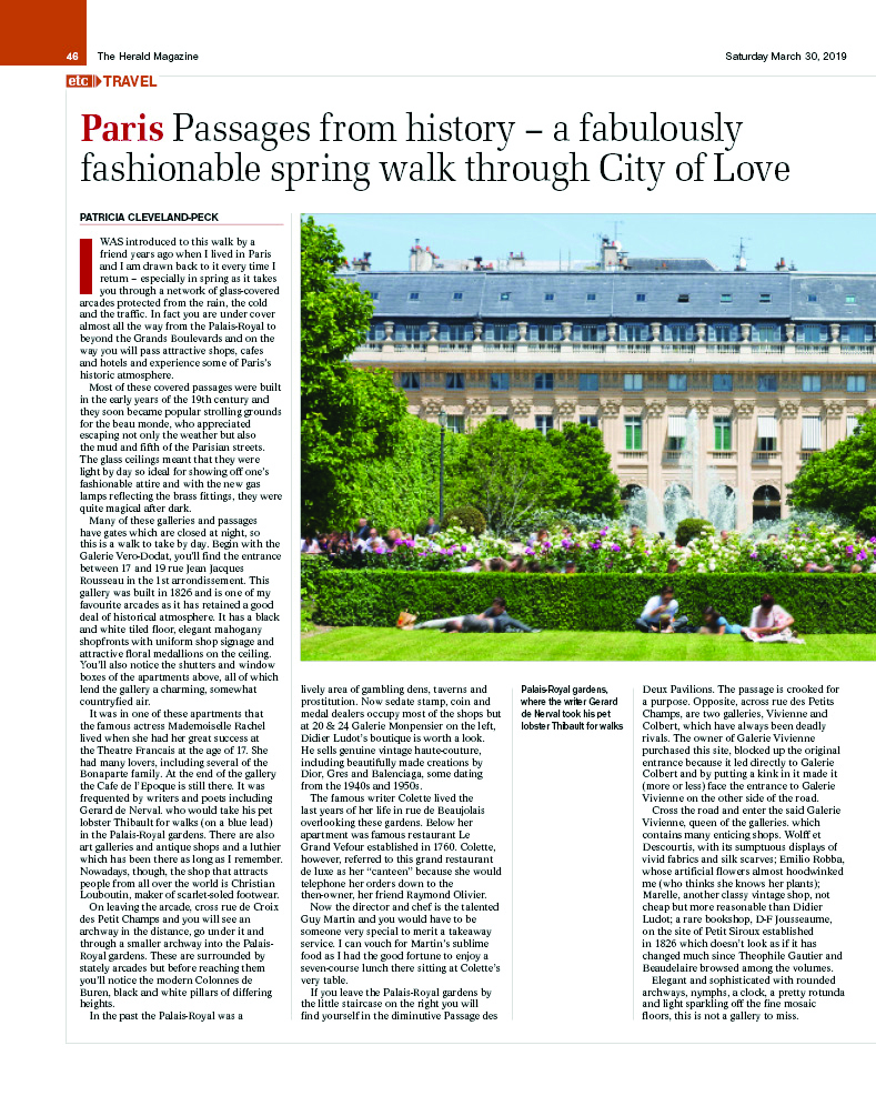 I was introduced to this walk by a friend years ago when I lived in Paris and I am drawn back to it every time I return – especially in spring as it takes you through a network of glass-covered arcades protected from the rain, the cold and the traffic. Read More…